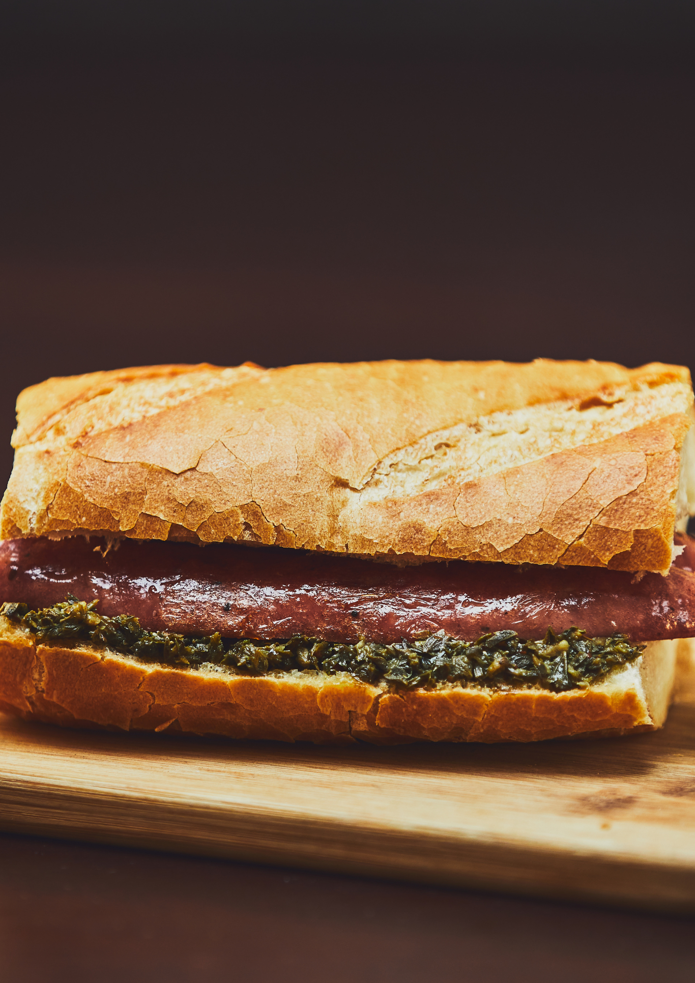 Pork sausage and bread, served with chimichurri sauce